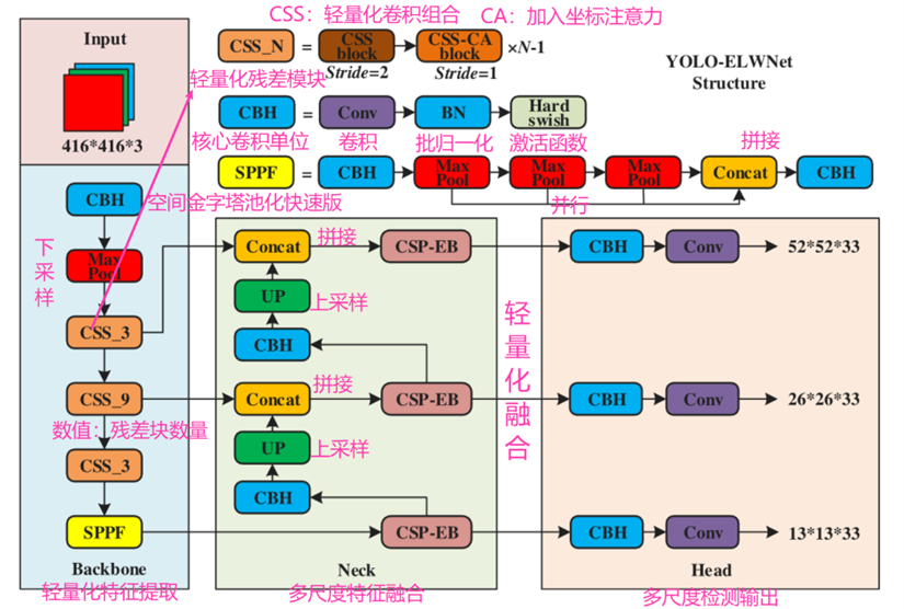 CBH模块:将原YOLOv3中的CBL(Conv+BN+LeakyReLU)模块中的激活函数替换为Hardswish。该函数计算更高效,更适合移动设备,且能缓解梯度消失问题。